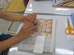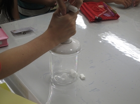 続いて、アロマ芳香剤作り。カップに水を入れて