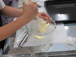やわらかくなったバターをゴムベラでクリーム状になるまで混ぜて