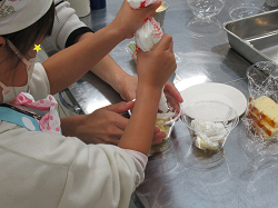 ホイップクリーム、フルーツなどを盛り付けるよ!